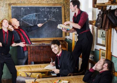 Feuerzangenbowle mit strengem Lehrer auf alten Schulbänken mit schwieriger Prüfung und Noten für Benehmen und Ordnung und alles in historisch eingerichteten Gaststuben, wie zu Uromas Zeiten.