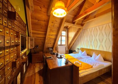 Das Apothekenzimmer ist Carl Hartwich (1851-1917) gewidmet. Er war Pharmazeut, anerkannter Drogenexperte, Heimatforscher & Erforscher der Tangermünder Burg. Er besuchte das Gymnasium in Stendal absolvierte 1870 bis 1872 eine praktische Ausbildung in der Apotheke seines Vaters in Tangermünde. Nebenbei beschäftigte er sich mit Pflanzenkunde, sammelte Insekten, Schnecken und Muscheln sowie Gesteine. Er wurde Apothekergehilfe in Coburg und Weilburg. Sein Studium der Botanik, Chemie und Pharmazie in Berlin schloss er mit der pharmazeutischen Abschlussprüfung ab. Nach einem Militärjahr führte er dann von 1879 bis 1891 die väterliche Apotheke in Tangermünde. Währenddessen arbeitete er auf dem Gebiet der Pharmakognosie mit dem Schweizer Apotheker Friedrich August Flückiger zusammen. Im Deutschen Apothekerverein wirkte er am Deutschen Arzneimittelbuch mit.
