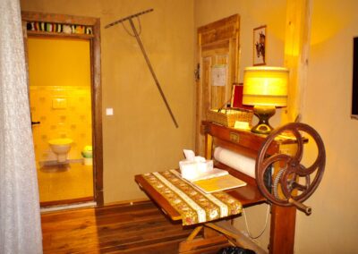 Im gemütlichen Bauernalkoven finden Sie neben einem großen alten Bett auch bäuerliche Utensilien und eine alte Mangel, die Sie an das ländliche Leben erinnern. Die schöne Landschaft um Tangermünde, die vielen Viehweiden und Felder, die im Sommer voller Raps, Korn und Mais stehen, sind Zeichen für die aktiven Bauern der Altmark. In weiten Kreisen werden die Ländereien beackert und abgeerntet, wie es seit jeher Brauch ist.