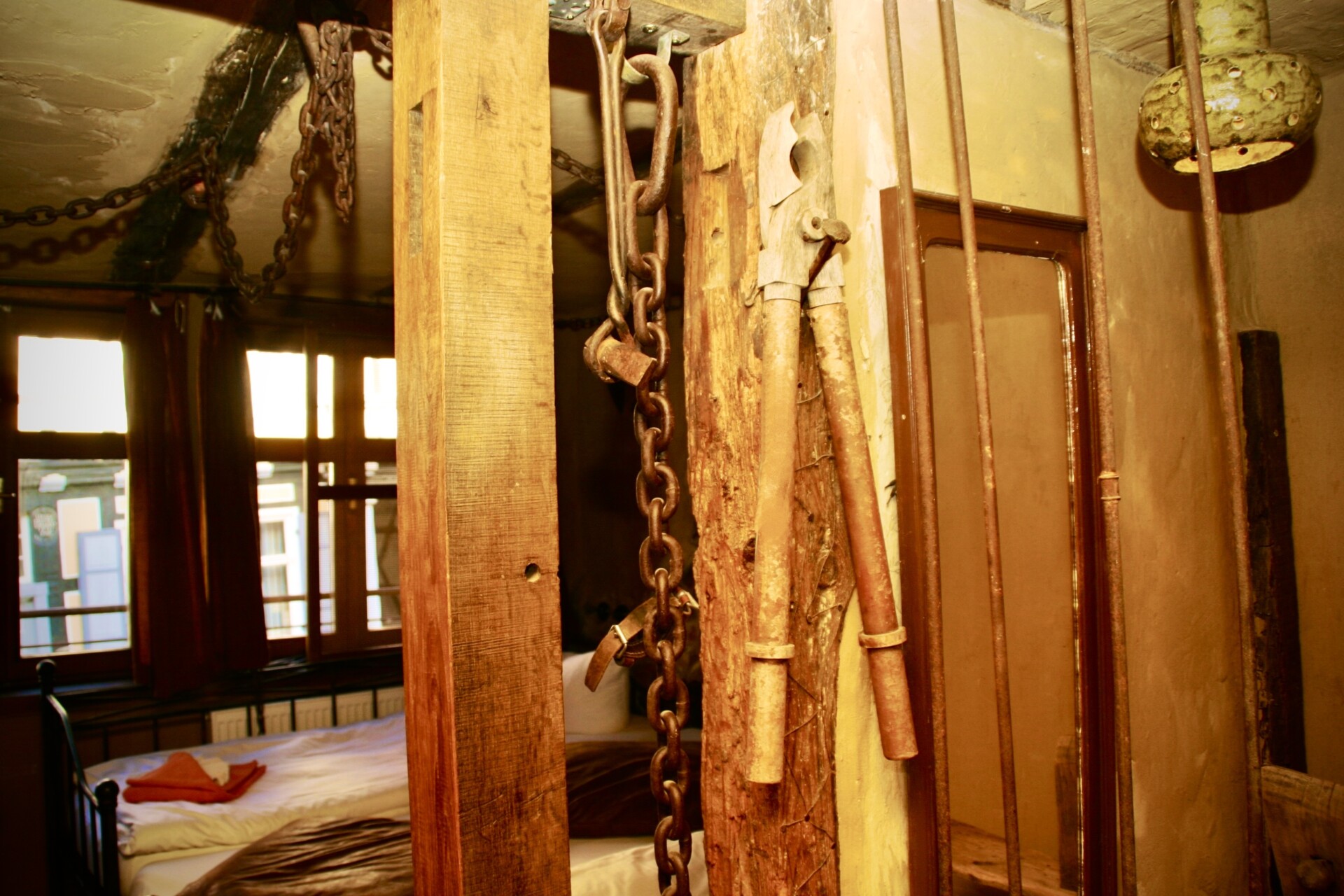 Schon Tangermündes Grete Minde musste unter den Werkzeugen der Inquisitoren leiden. Zeitlich ist dieses Zimmer um 1200 angelegt - mit kleinen Stilbrüchen wie elektrischem Licht, einem Flachbildfernseher und fließendem Wasser.