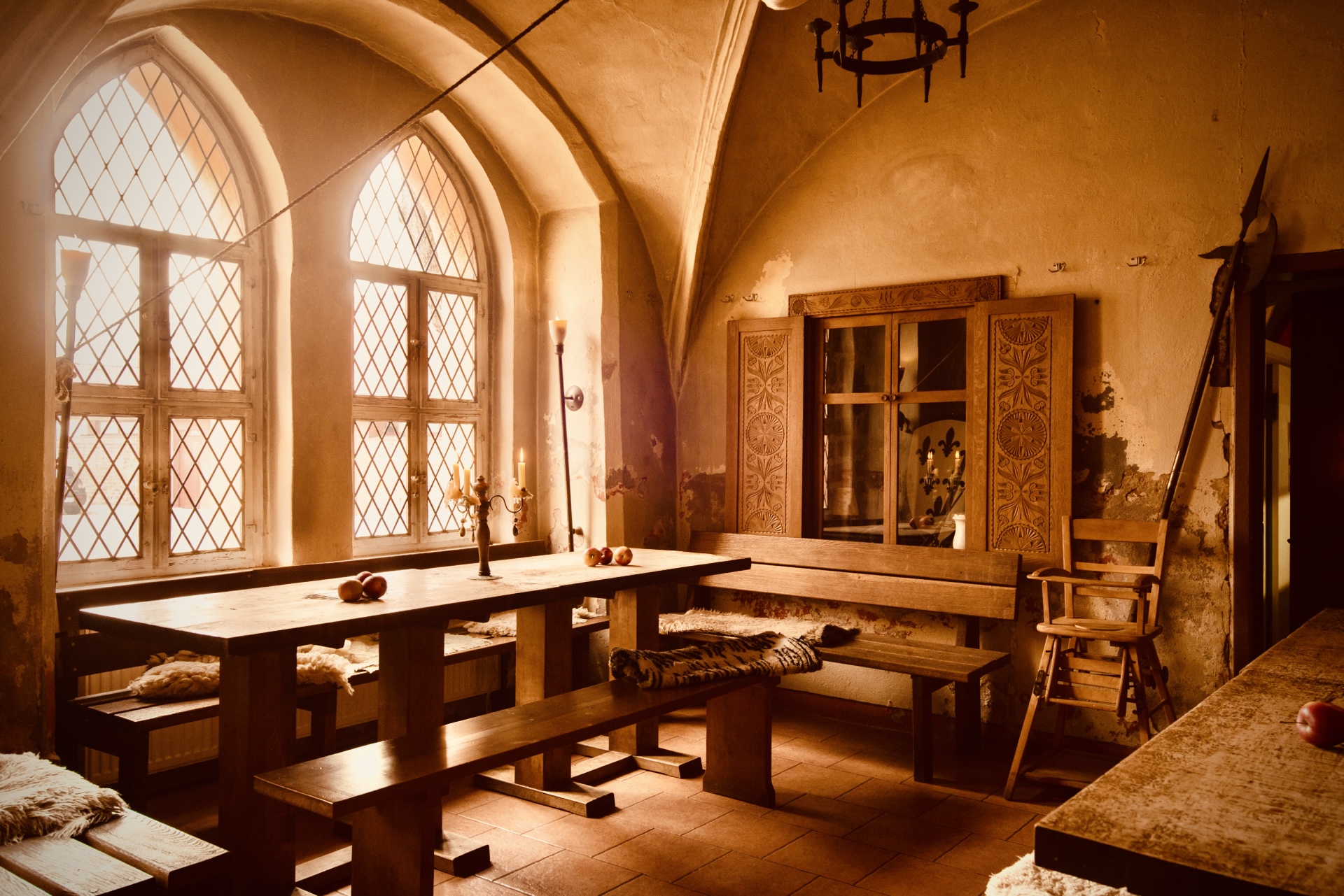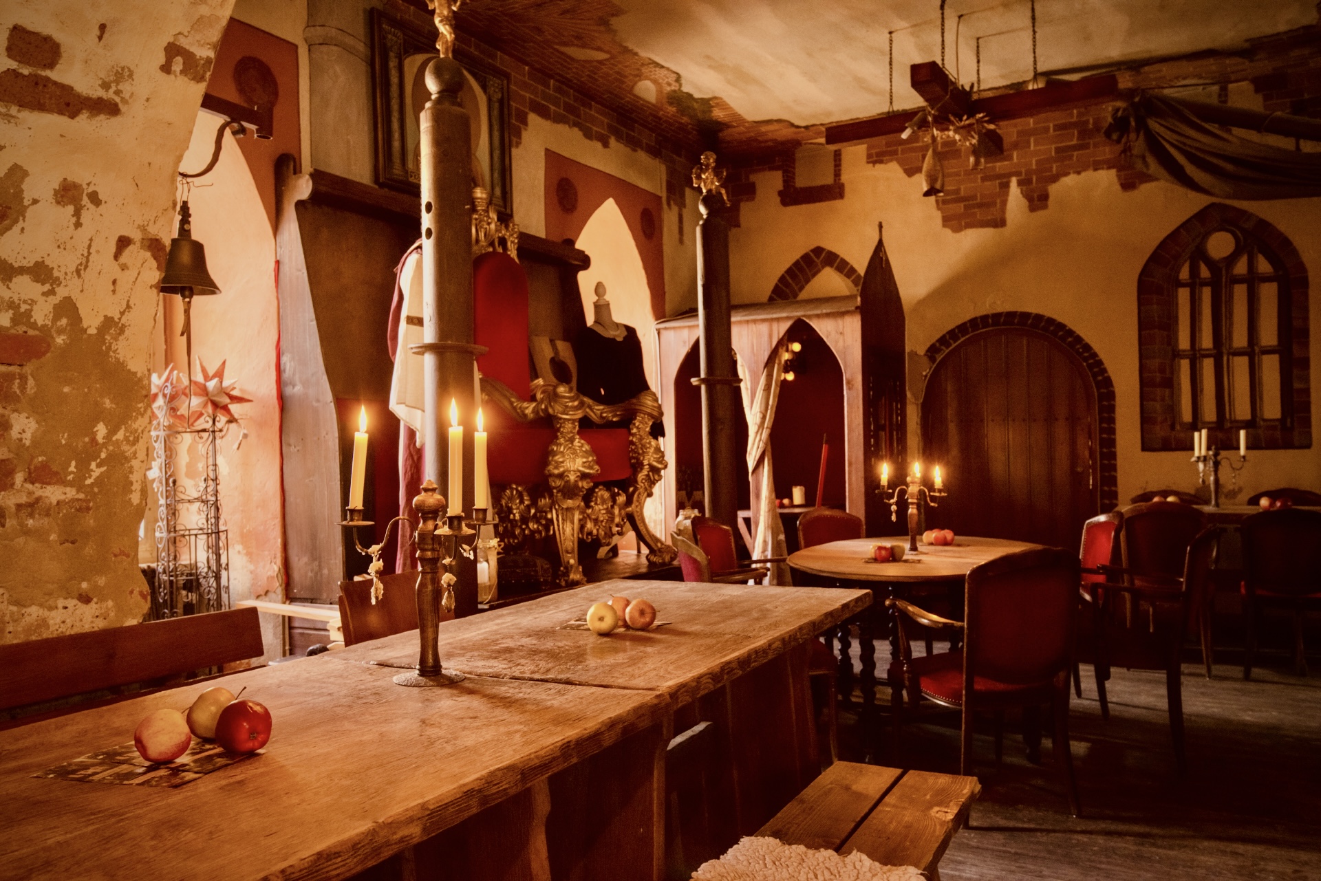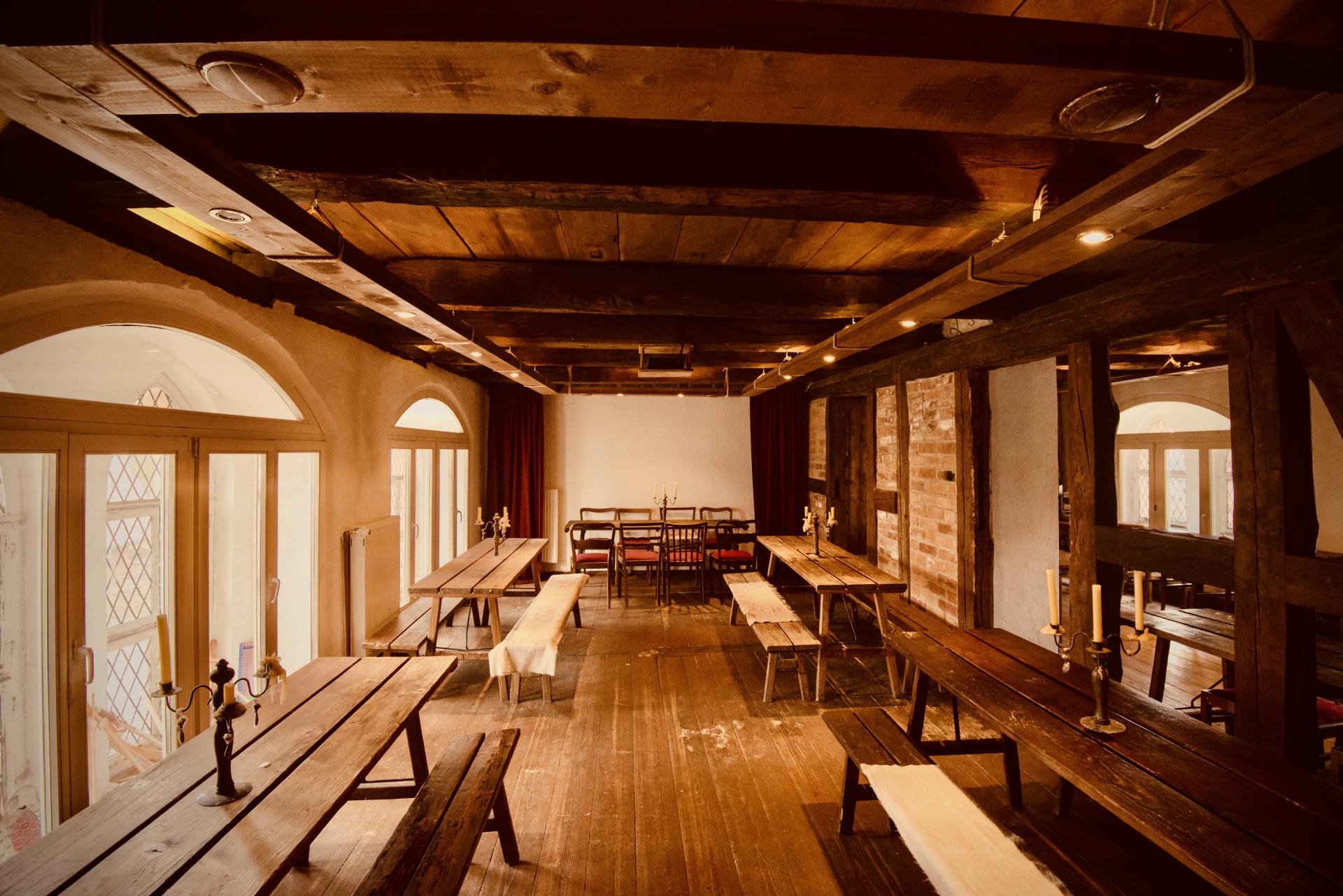 Meterdicke Wände, Kerzenbeleuchtung, Bleiglasfenster, Throngestühl, Kanzel, Beichtstuhl, Kamin und vieles mehr bilden den perfekten Rahmen, um mit uns zusammen ins Mittelalter einzutauchen.